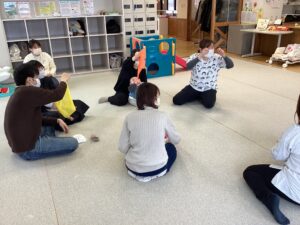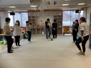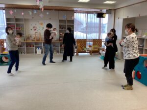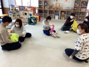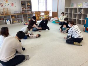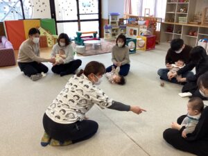 ☆今日のままナビは、運動指導員の先生より赤ちゃんとふれあい体操の講座でした。足の裏やお腹、背中を触る、触れあうことの大切さや、音楽に合わせてお子さんを抱っこしながら動いたり、お母さんたちの首から足までのストレッチまで教えて頂きました。参加されたお子さんたちの月齢も小さく、同じくらいの月齢だったりして、お母さんたちでお話されている姿も見られ、とても良い時間でした。