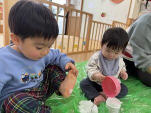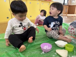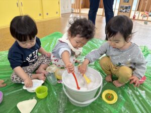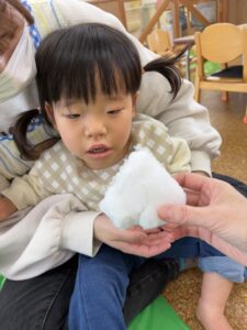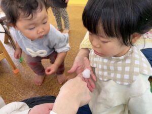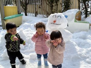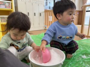 ばんび組 雪遊び❄️ 2026/02/12 窓を開けると「ゆきだ〜!!」と大喜びみんな! 天気がいい日には外で、そして室内でも雪遊び楽しんでいます⛄️ 最初は冷たい感触にびっくり😳の子もいましたが、少しずつ慣れてきた様子です! 自然に触れながら、感じながら、色々な経験できたらと思います😌 PREV NEXT