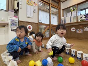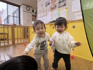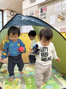 雨が降っていたり気温が低い日はお部屋やホールで体を動かしたりおもちゃで遊んだり‥そんなお部屋遊びを楽しむばんびさんの様子をご覧ください。