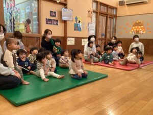 コロナ対策の為、1歳児・2歳児に分かれて成道会の会を開催しました。