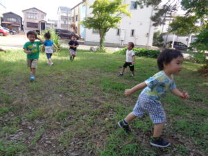 東光広場で遊びました。かけっこをしたり、木の実を見つけたりと楽しみました🌿