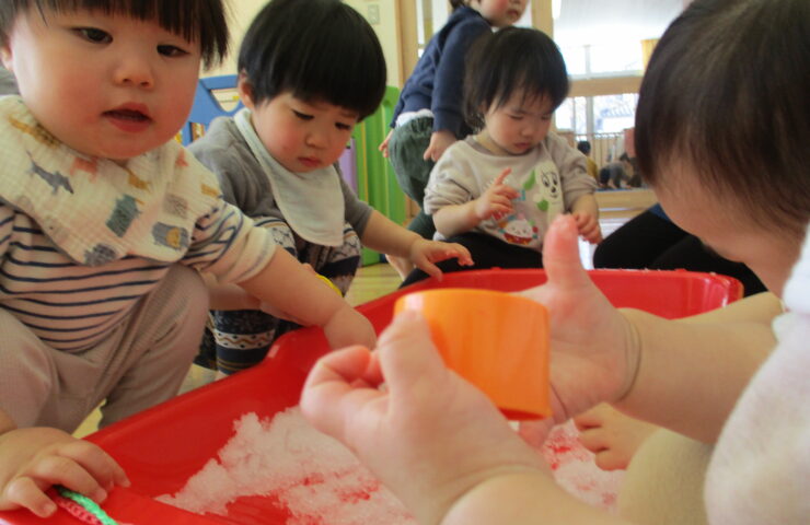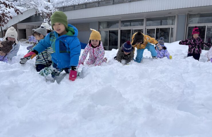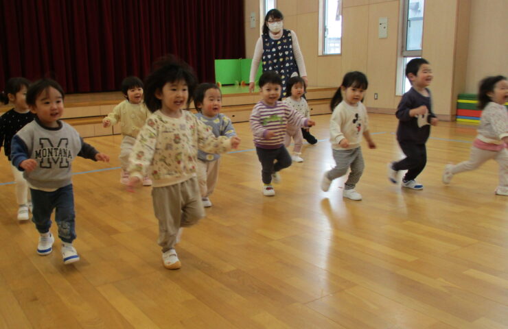 明るい園内には、子どもたちの元気な笑い声が響いています。 広い園庭には子どもたちの五感を刺激する緑の芝山が広がり、 子どもたちの発見の場となっています。