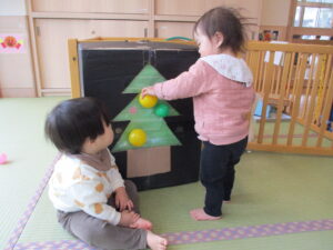 クリスマスツリーにボールをぺったん!