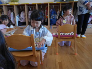 ★4才児 ひつじぐみ 最近の様子★ 2026/03/30 3月に入り、温かい日が増え園庭で遊べるようになり大喜びのこどもたち。 外で遊ぶの楽しいね♪ 進級に向けて、ピアニカに初挑戦!! 上手に音を出せていました。 ひつじぐみ最終日は1年間すごしたお部屋を掃除してピカピカに✨ 4月からは憧れの年長ぞうぐみさん!! 楽しみだね♡ PREV NEXT
