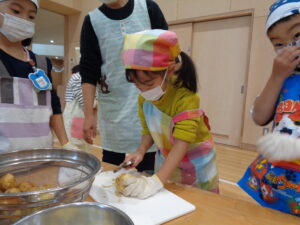 「上手に切れた!!!」「〇〇くん切るの上手だね!」と喜んだり、お友達と褒め合う姿がたくさんみられました♪