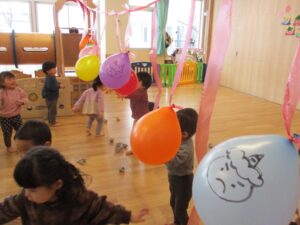 鬼さん風船🎈に豆まきをしたり、