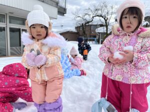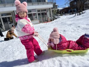 【2歳児うさぎぐみ】最近の様子 2026/02/24 少しずつ暖かくなってきて過ごしやすくなってきましたね。 うさぎぐみ、今年の冬はたくさん雪遊びを楽しみました♪ ふっかふかの雪に埋もれたり… お友達とソリ遊びをしたり… たくさん雪が降ってたくさん雪遊びを満喫することができました!! 楽しかった雪遊びも今週で終了となります。スキーウエアの用意ありがとうございました。 とっても楽しかったね♪ PREV