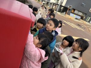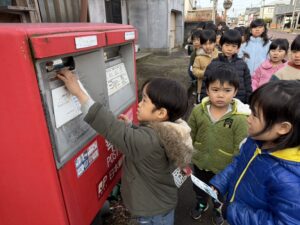 できあがった年賀状を自分でポストに投函しました!!