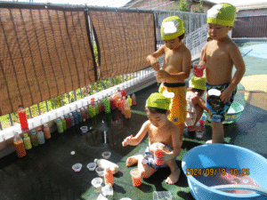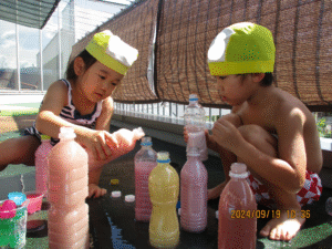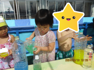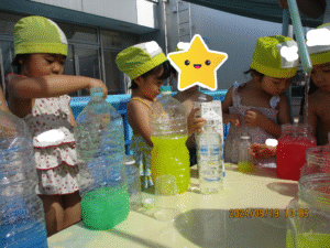 らっこ組はテラスで色水遊びをしました!