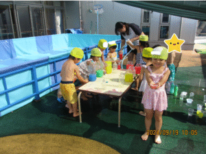 明日の祖父母参観では、お部屋で色水あそびを楽しみます!お楽しみに♬