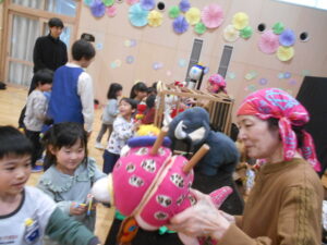 3月26日、保護者会の主催で行われた『人形劇団ちょうちん座』の人形劇観賞!