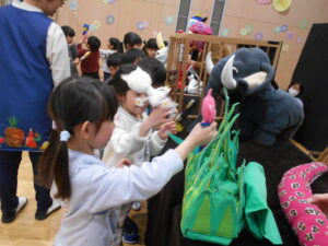 3月26日、保護者会の主催で行われた『人形劇団ちょうちん座』の人形劇観賞!