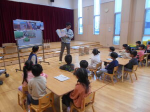 年長対象にお米屋さんから『お米ができるまで』の話をききました