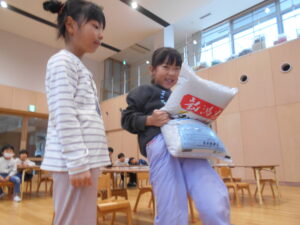 10㎏は一人で持てる子も多かったけど、30㎏袋は力を合わせてもとっても重かったよ。