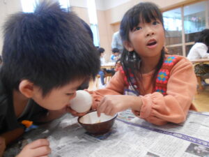 精米の時には、「なかなか白くならないな~」「手がつかれた~」と声があがっていました。
