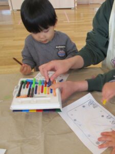 「誰に出そうかな?」とワクワクしながらお絵描きを楽しむ子どもたちです。