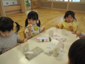 あひる組で過ごすのも残り1か月となりました。2歳さんに向けて、様々なことにチャレンジしていきたいと思います!
