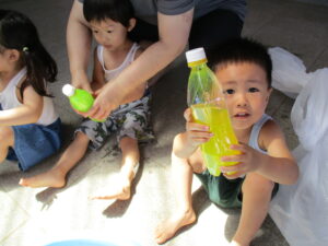 ポットの中にもジュースが入っていて、カルピスやミックスジュースをたくさん作って、夢中で遊んでいた子ども達です。