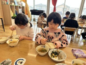 給食大好きなぺんぎん組さん。いつもびっくりする位おかわりしてくれます☆