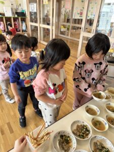 箸で食べられるようになった子もたくさん増え「見て!つかめた!」と教えてくれます。