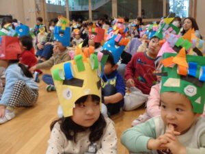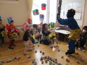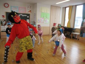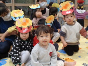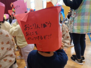 怒りオニ!泣き虫オニ!意地悪オニ!が登場 みんなの心の中にいるね!「鬼は外~♪福は内~♪」でやっつけよう! みんなで、鬼のお面を被って気合い十分💛