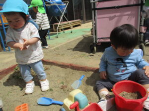 砂のひんやりした感触が心地良いようで、どの子も真剣な表情で集中して遊んでいます!