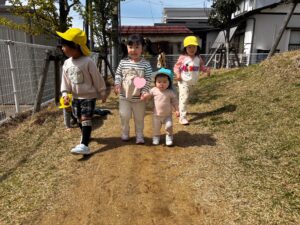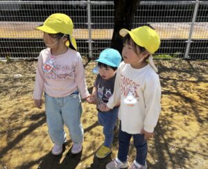 優しいお姉さん達にエスコートされて、園庭をお散歩しました。