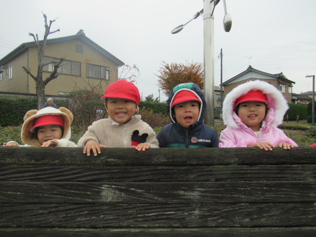 春の頃からみんな、とっても大きくなったね。 この前、ちらちら降る雪に大喜びの子ども達でした。寒さに負けず、冬ならの遊びも楽しんでいこうね☃