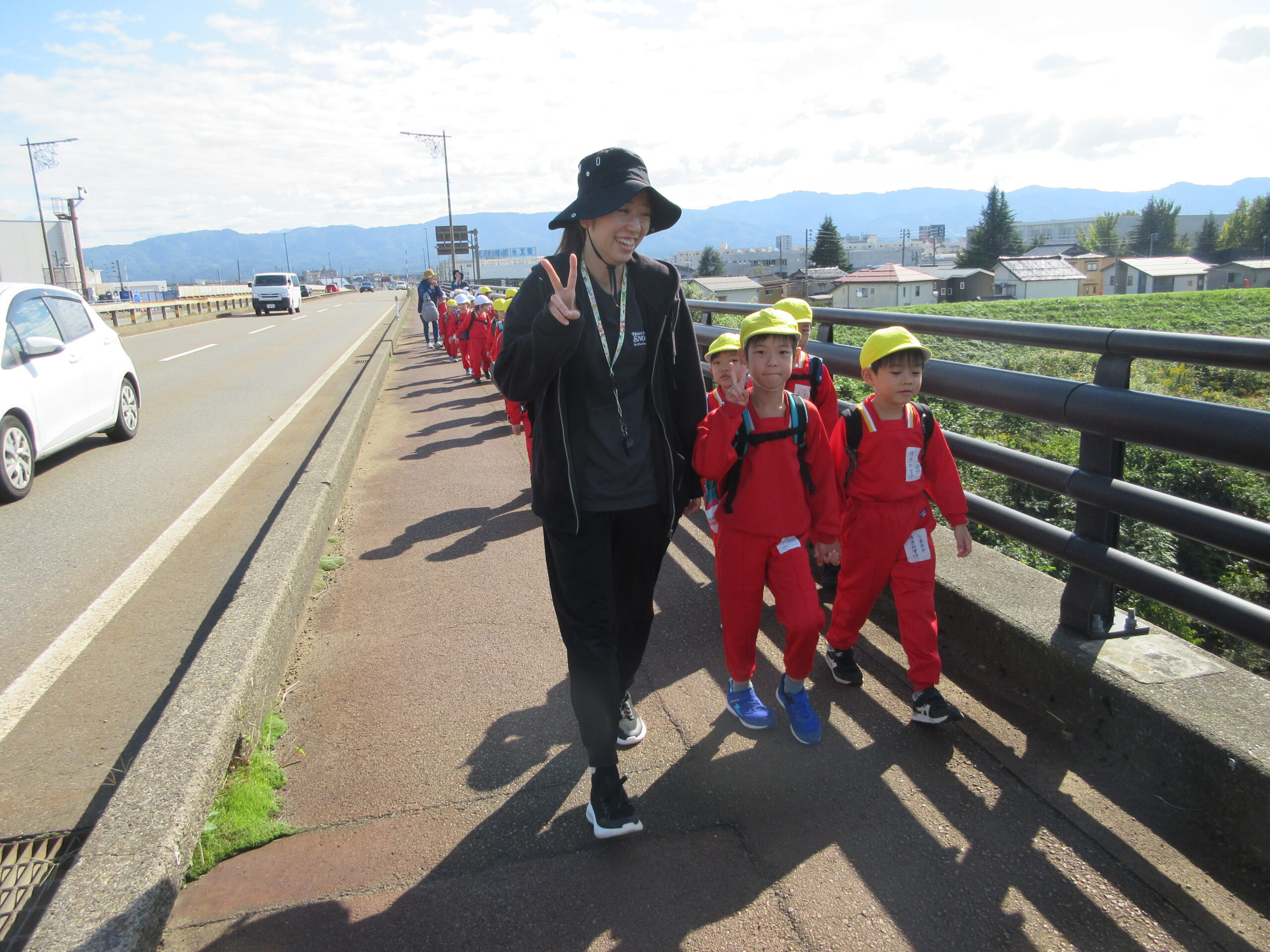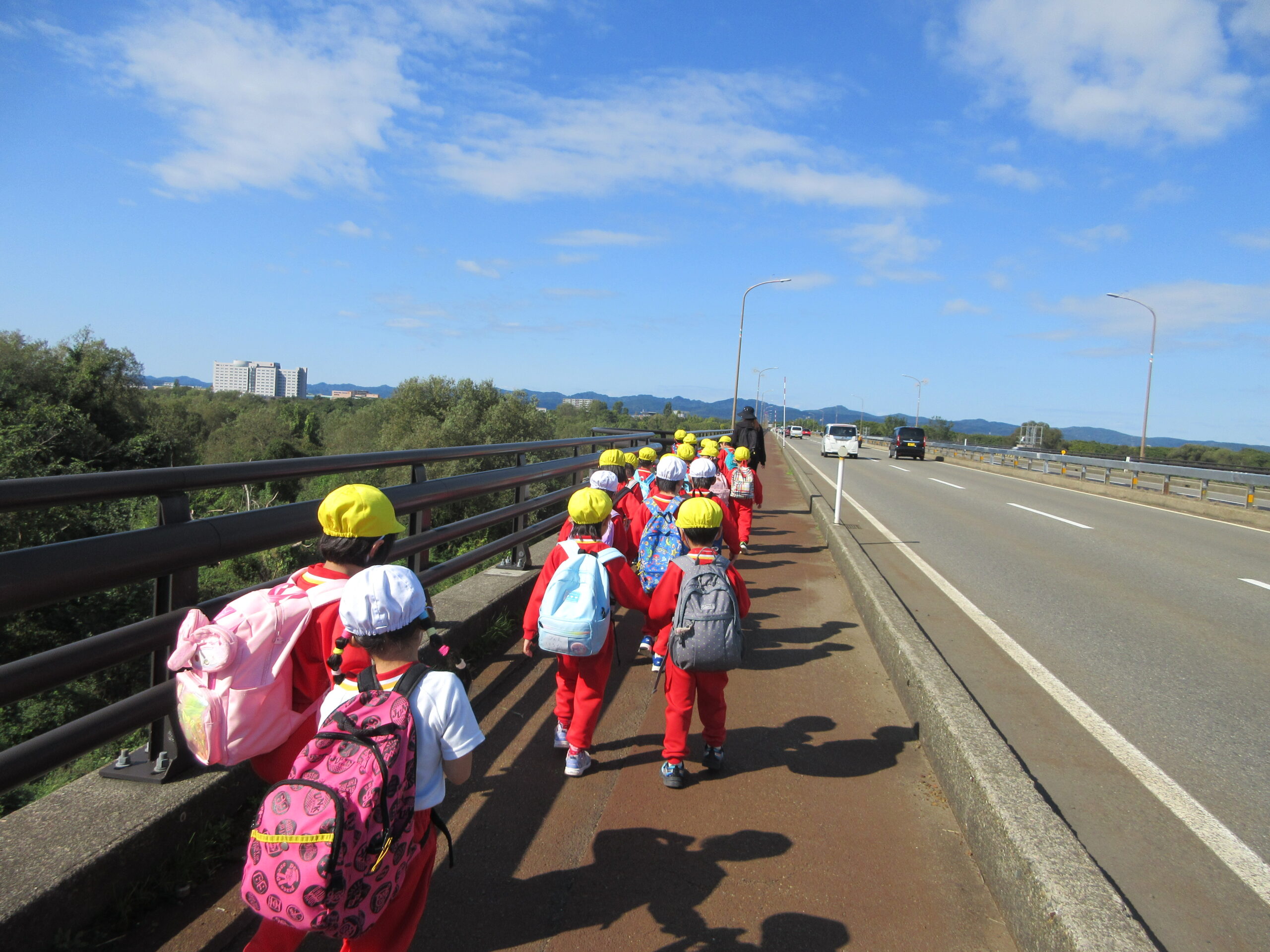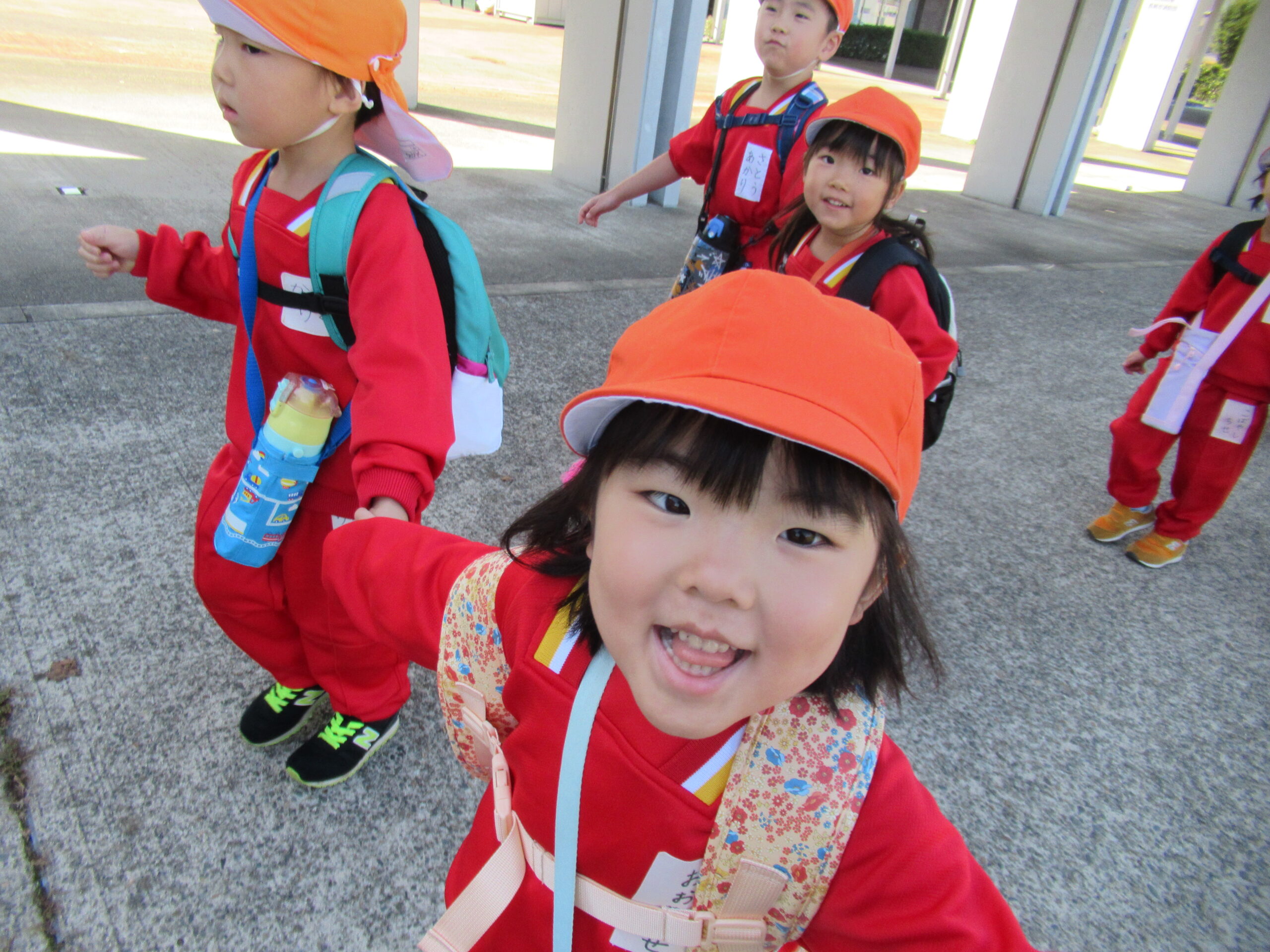 ☆遠足に行ってきました(3・4・5歳児)☆ 2025/10/29 10月23日(木) 3・4歳児は、ぐんぐんへ遠足へ よーく晴れた一日。自分のリュックに、お弁当。 特別な一日に、朝からウキウキ感いっぱいな子どもたちでした。 3.4歳は保育園から出発して、歩いてぐんぐんへ。公園にはたくさんとんぼが飛んでいて、 思い切り走ったり、坂すべりをしたりして遊びました! 5歳は、水道公園までは🚌で、そこから歩いて千秋が原ふるさとの森へ 現地に着いてからは、園庭より広い芝の上で、鬼ごっこをしたり、とんぼを捕まえたり(^O^) 楽しい一日になったようです💛 みんな、おいしいお弁当を食べてにっこにこ。 秋晴れの中、楽しい1日になりました。 遠足の準備、ありがとうございました!! PREV NEXT
