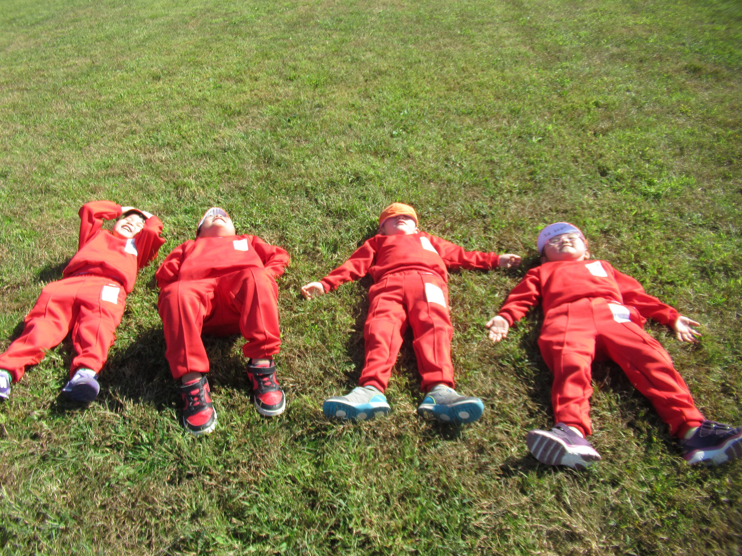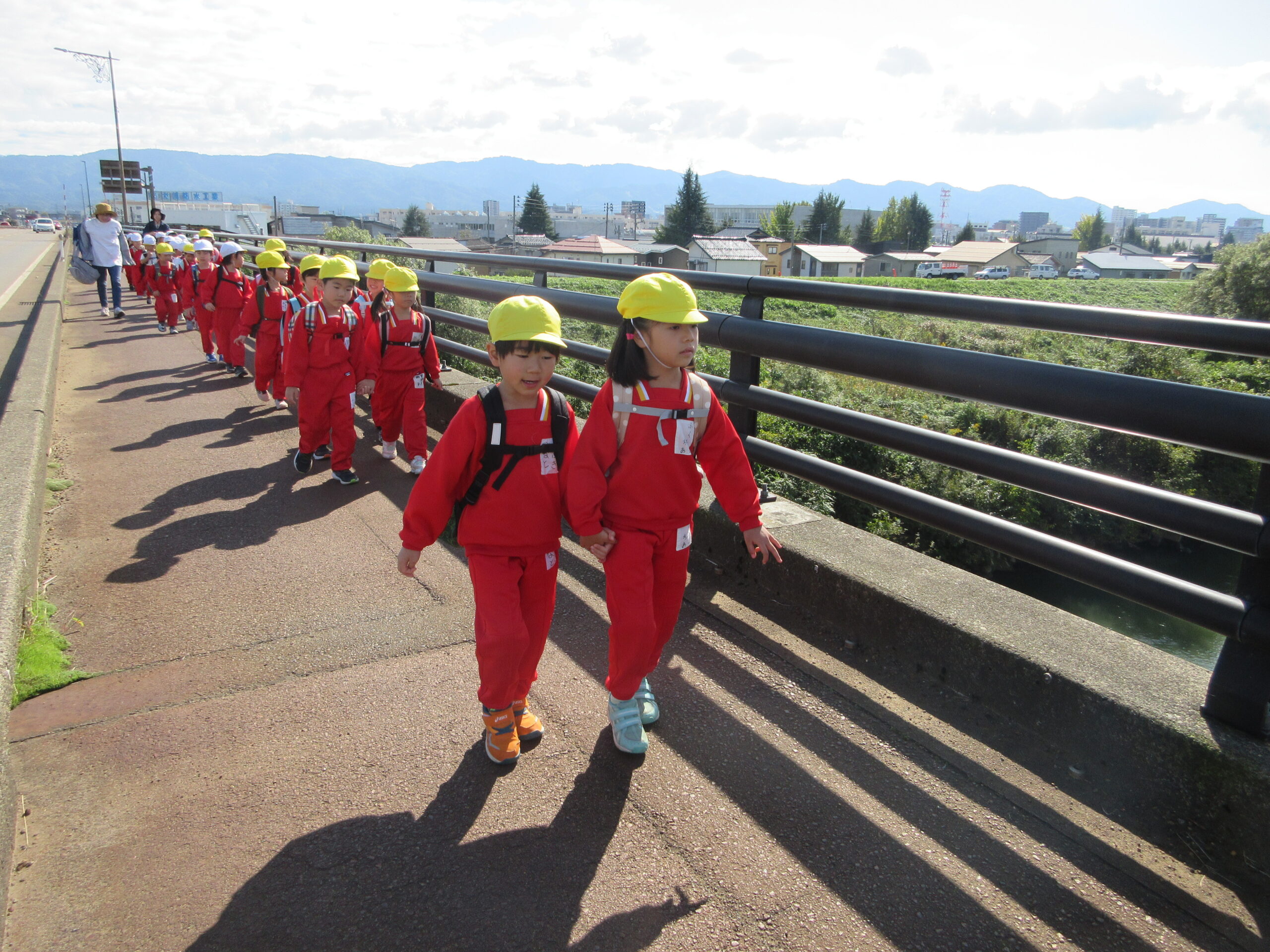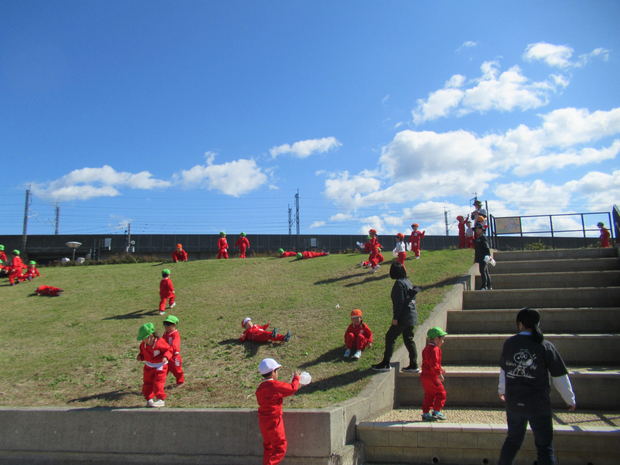 ☆遠足に行ってきました(3・4・5歳児)☆ 2025/10/29 10月23日(木) 3・4歳児は、ぐんぐんへ遠足へ よーく晴れた一日。自分のリュックに、お弁当。 特別な一日に、朝からウキウキ感いっぱいな子どもたちでした。 3.4歳は保育園から出発して、歩いてぐんぐんへ。公園にはたくさんとんぼが飛んでいて、 思い切り走ったり、坂すべりをしたりして遊びました! 5歳は、水道公園までは🚌で、そこから歩いて千秋が原ふるさとの森へ 現地に着いてからは、園庭より広い芝の上で、鬼ごっこをしたり、とんぼを捕まえたり(^O^) 楽しい一日になったようです💛 みんな、おいしいお弁当を食べてにっこにこ。 秋晴れの中、楽しい1日になりました。 遠足の準備、ありがとうございました!! PREV NEXT