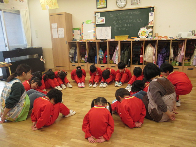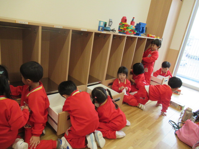 【3歳児 大掃除とカルタ遊び】自分のロッカーは、自分できれいにするよ。お掃除の後は、お楽しみタイム!