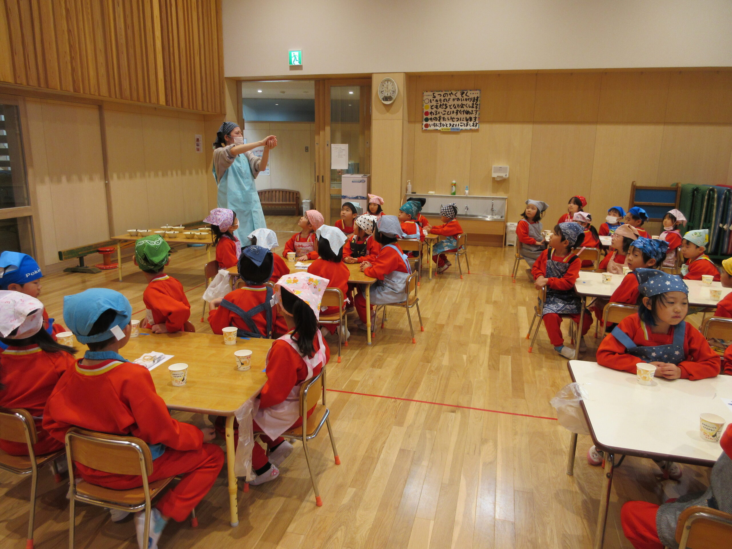 小学校ごとに分かれて、1年生と、「好きな、給食は?、休み時間は何してる?」などなど質問タイムをもちました。