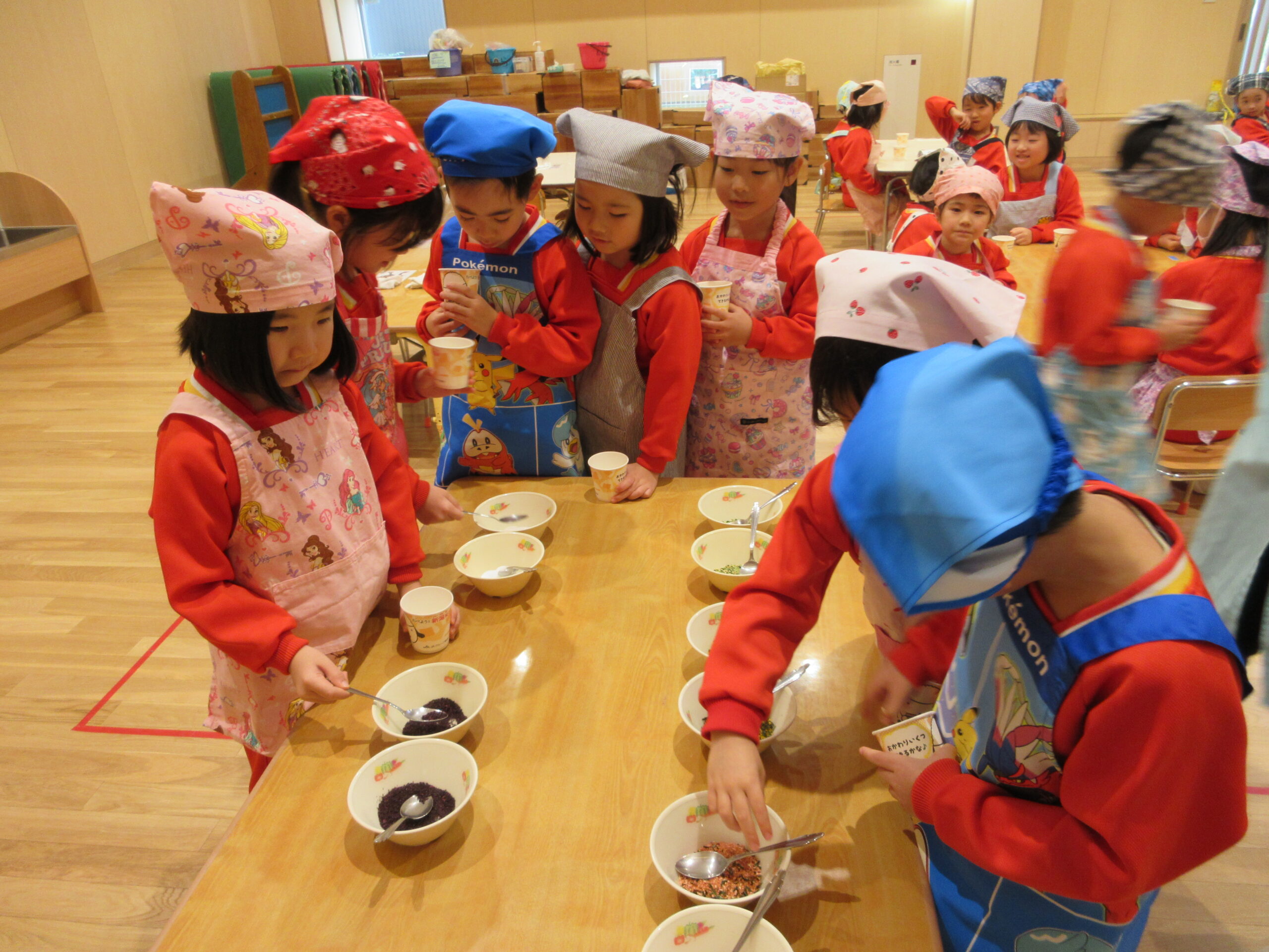 その後、お米を炊いて、おにぎり作り🍙自分の好きな味のふりかけを選んで、シャカシャカしました(≧▽≦)