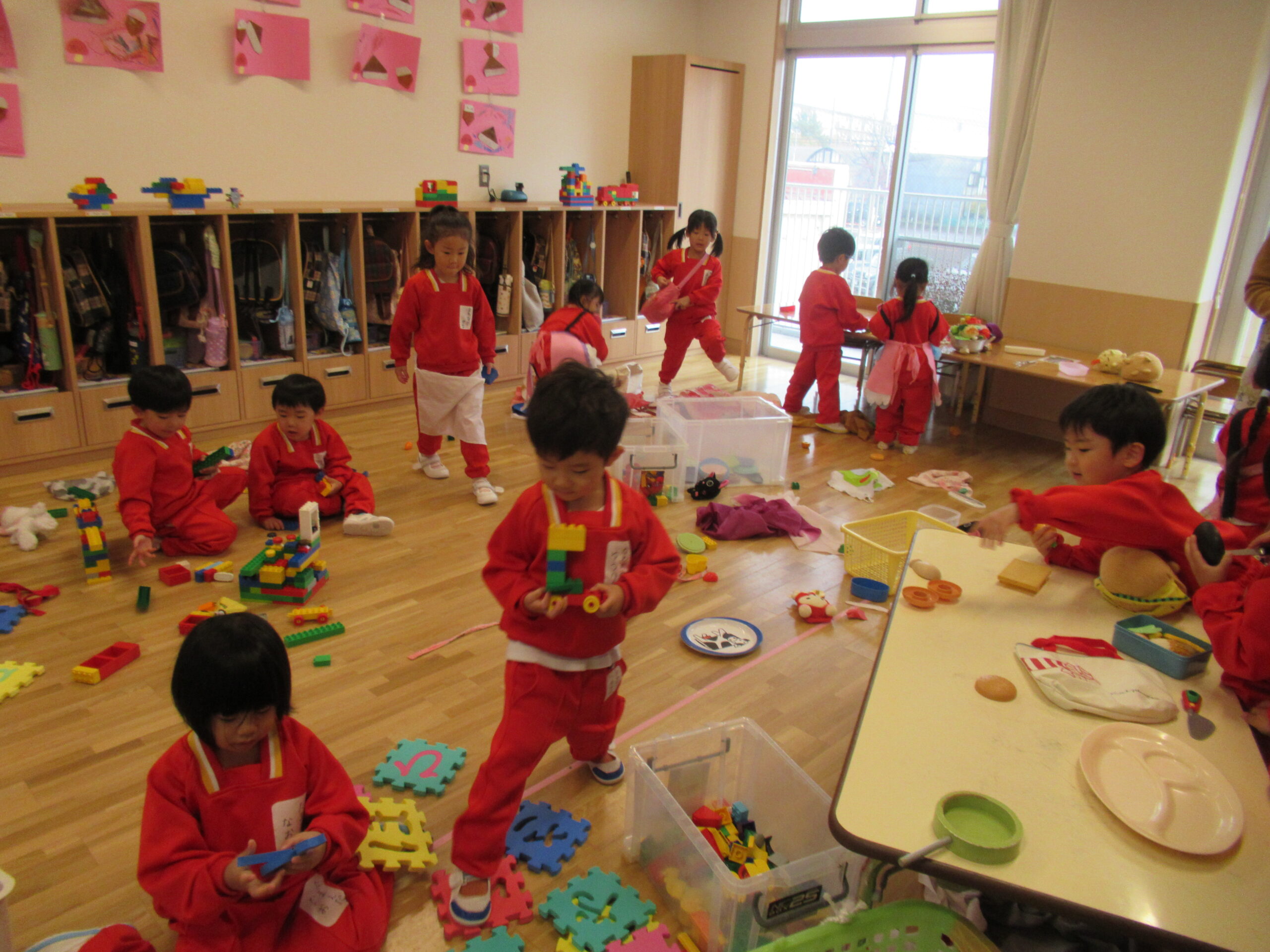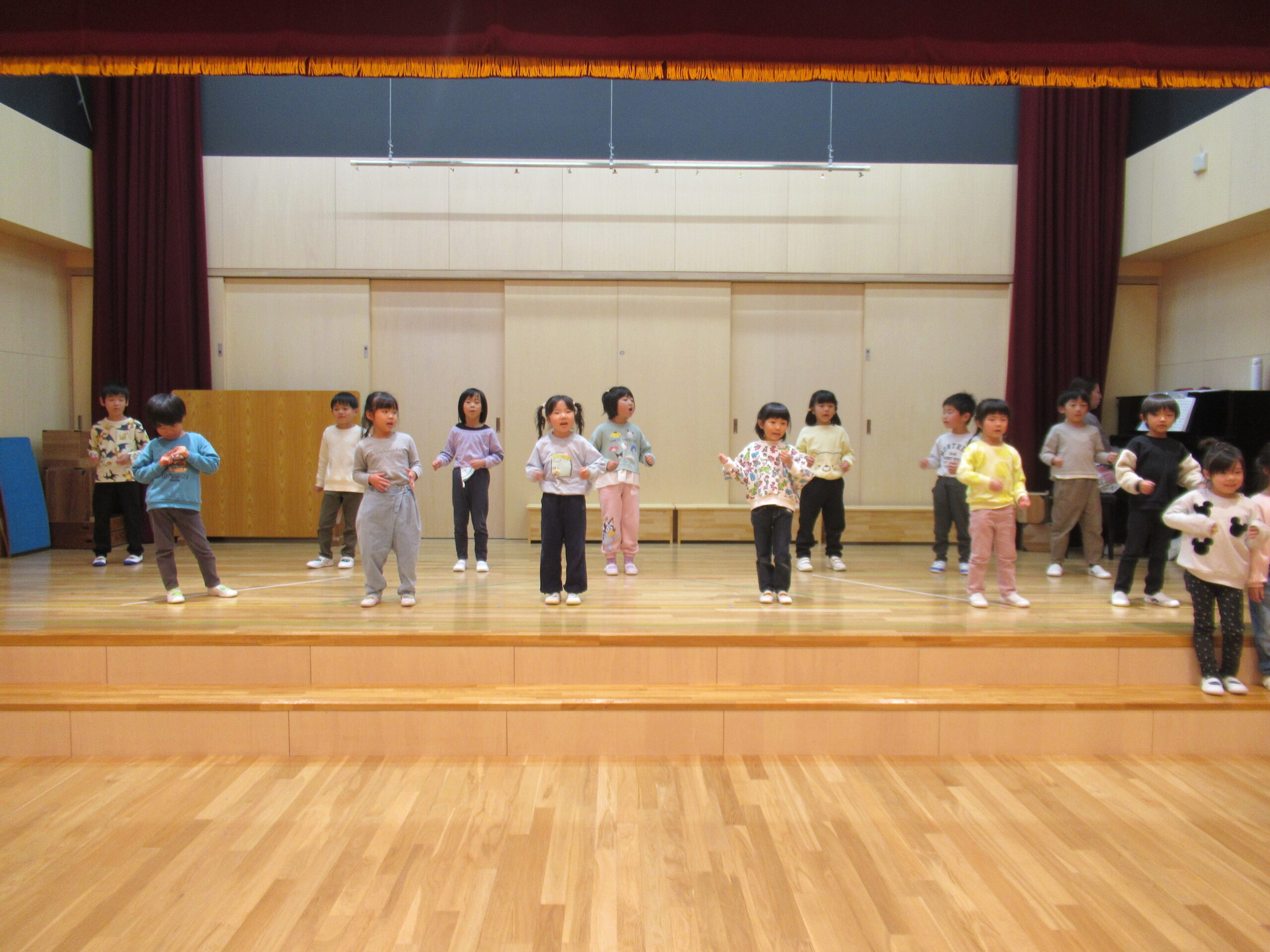 北風なんかに負けないぞ!! 2025/11/19 朝晩の冷え込みが強くなり、11月半ばにして雪が降り、北風こぞうが冬を運んできました。 3・4・5歳児の子ども達は北風に負けることなく、園庭で遊んだり、お部屋でままごと遊びを楽しんだり、 12月の発表会に向けてはりきって練習をしています。 落ち葉をキャッチ!できるかな? 🍁 彩づいた、落ち葉を集めておままごと お部屋ではゆったりと、ままごと・ブロックあそび おうちの方に、「かわいい所、かっこいい所をみてもらおう!」と発表会の練習もがんばっています。 PREV NEXT