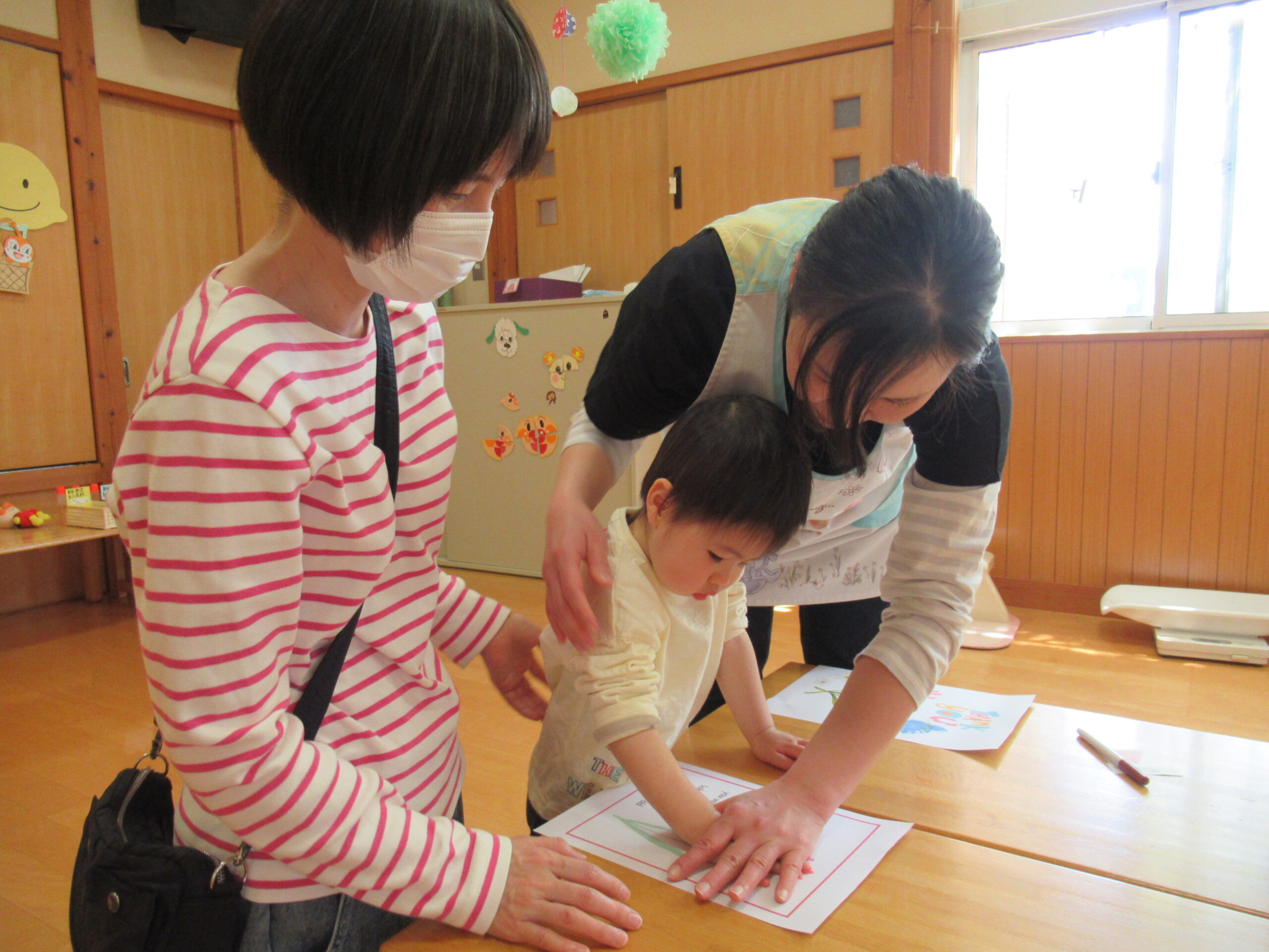 支援センターあおぞら 4月の活動 2024/04/30 こんなことしたよ♡ ☆ 身体測定の手形スタンプ 春は可愛いお手々の花束をスタンプしました。 ☆ こいのぼり制作 アンパンマンのこいのぼりにシールを貼ったり、お絵描きをして可愛いオリジナル こいのぼりの完成!! ☆ みんなで歌って楽しいね! 月に一度の音楽あそび。小澤先生のピアノに合わせて歩いたり、ジャンプしたり! リズムに合わせて楽しく身体を動かしました。 毎日最後にする『お楽しみ』では絵本やペープサート、お歌を歌って「さようなら」を しています。 PREV NEXT