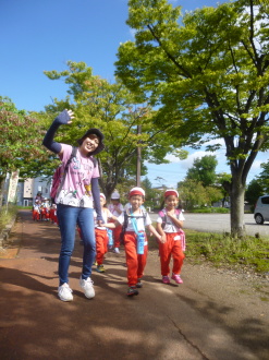 あかさん・あおさん・しろさんは年齢に合わせた距離を歩いて、自分の力で悠久山公園まで遊びに行ってきました。