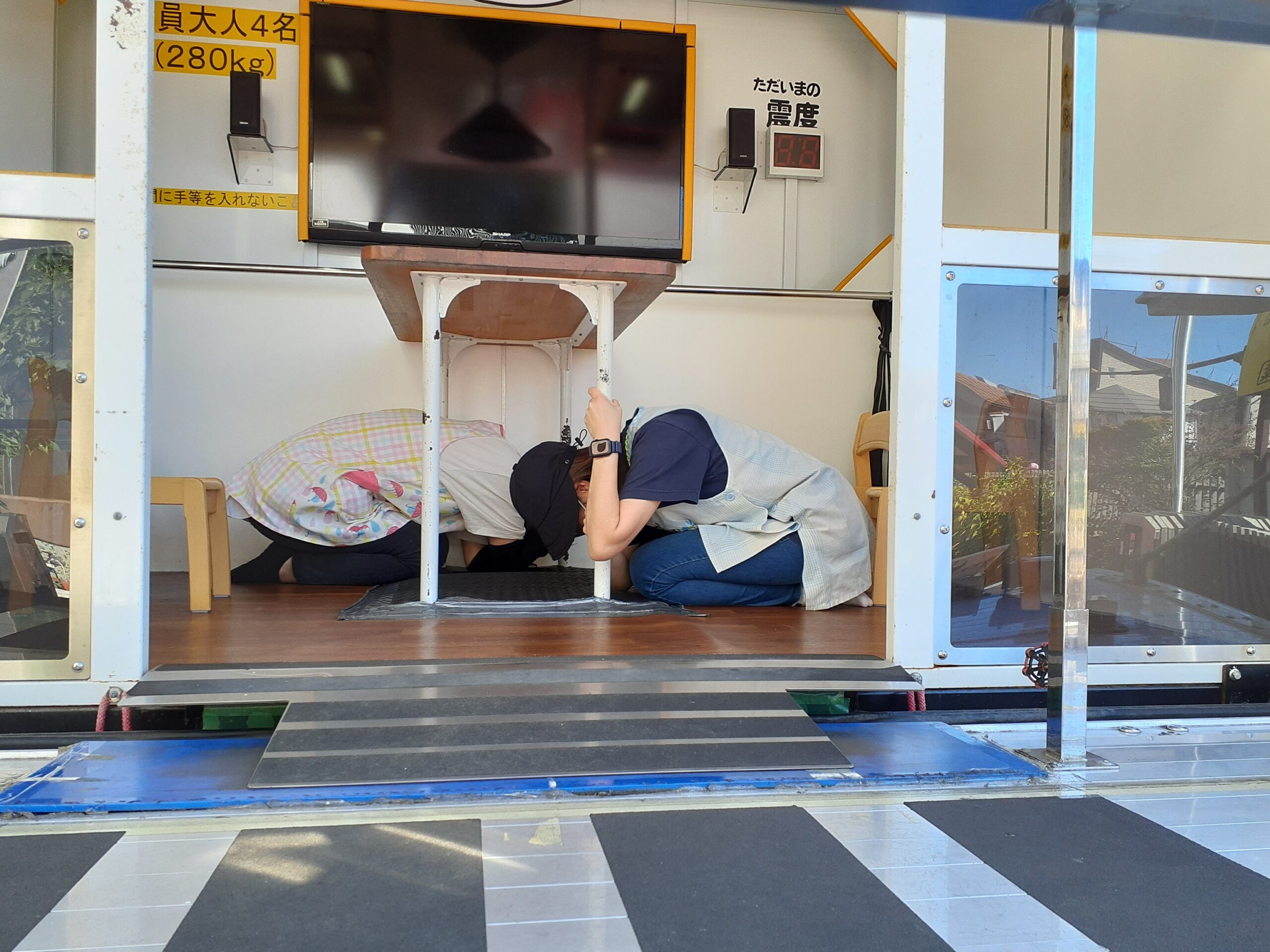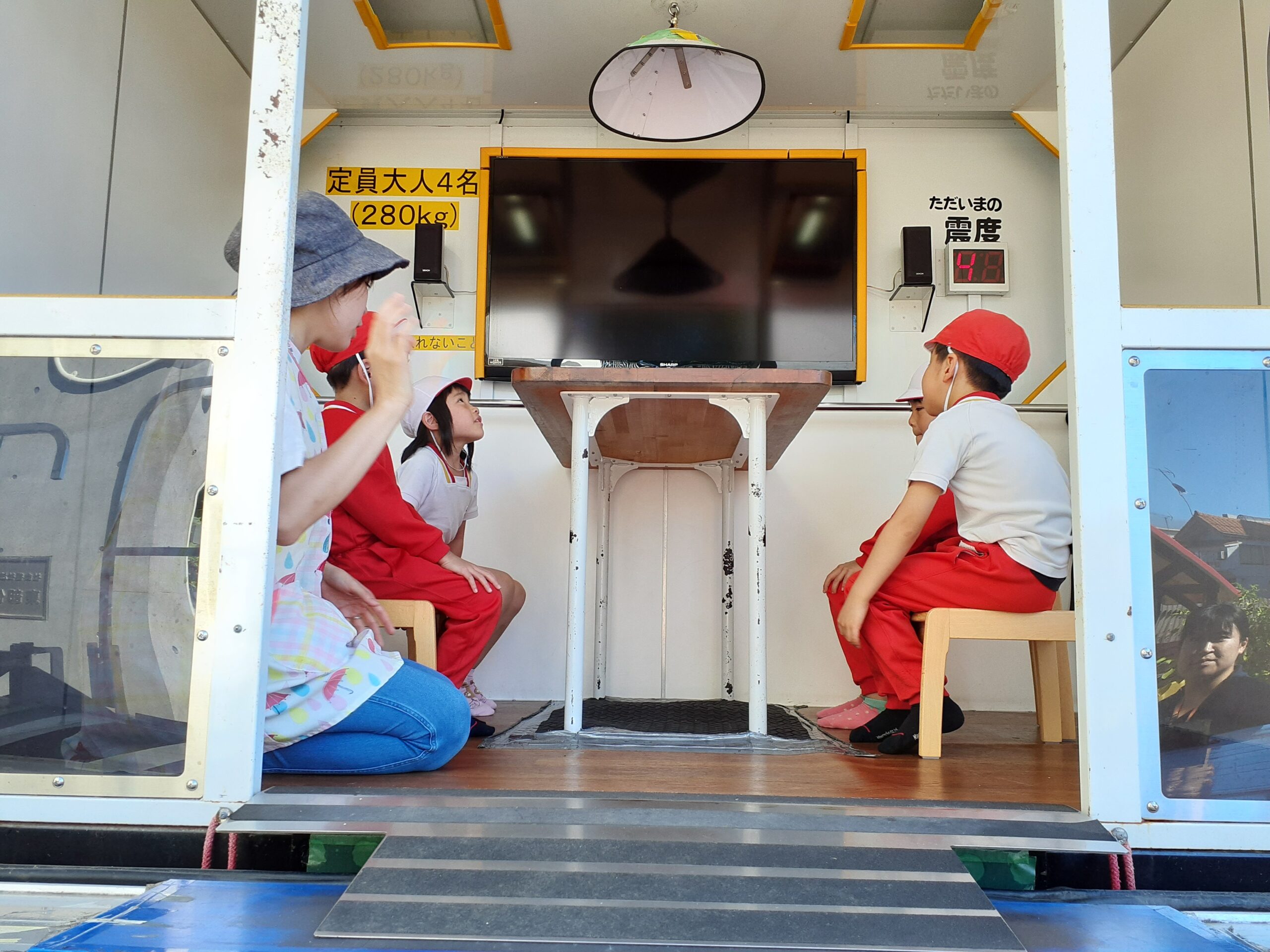 地震体験車がきたよ🚙 2025/10/30 10月15日(水曜日)総合避難訓練がありました。 地震を想定した訓練で、みんなで園庭まで避難をしました。 過去に新潟でも地震があったこと、地震が起きたら頭を守ることを学びました。 そらのあおぐみ、ほしのしろぐみが地震体験車に乗り、震度4の揺れを体験しました! 地震の際に、自らの身を守れるようシミュレーションを行いました。 PREV NEXT