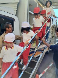 そらのあおぐみ、ほしのしろぐみが地震体験車に乗り、震度4の揺れを体験しました!
