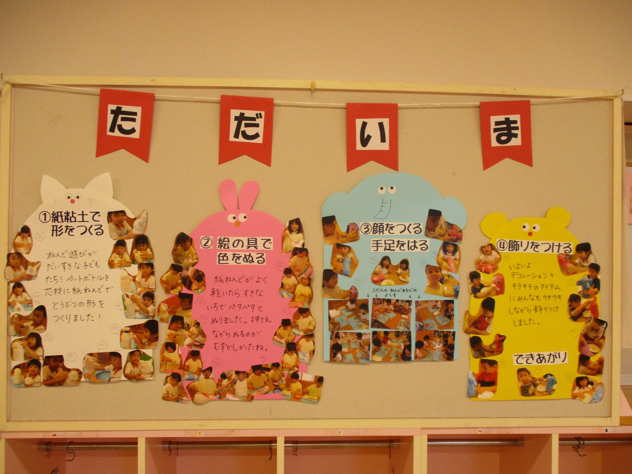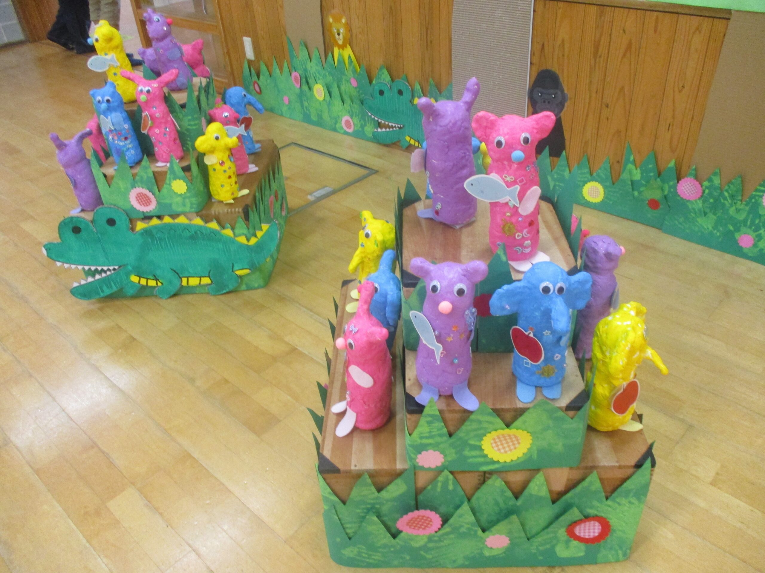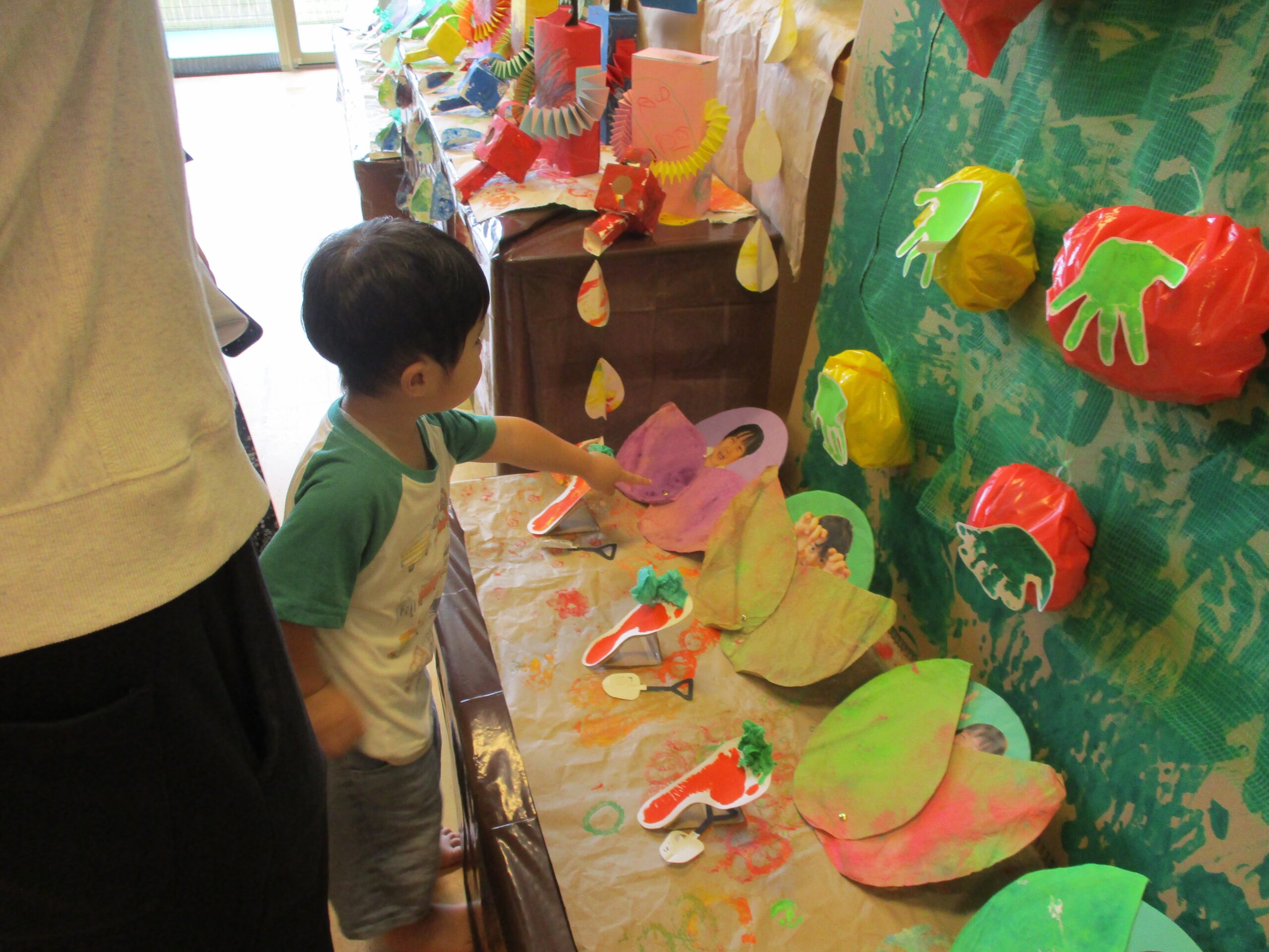 おうちの方につくった作品を見てもらおうと、はりきる子供たちでした。