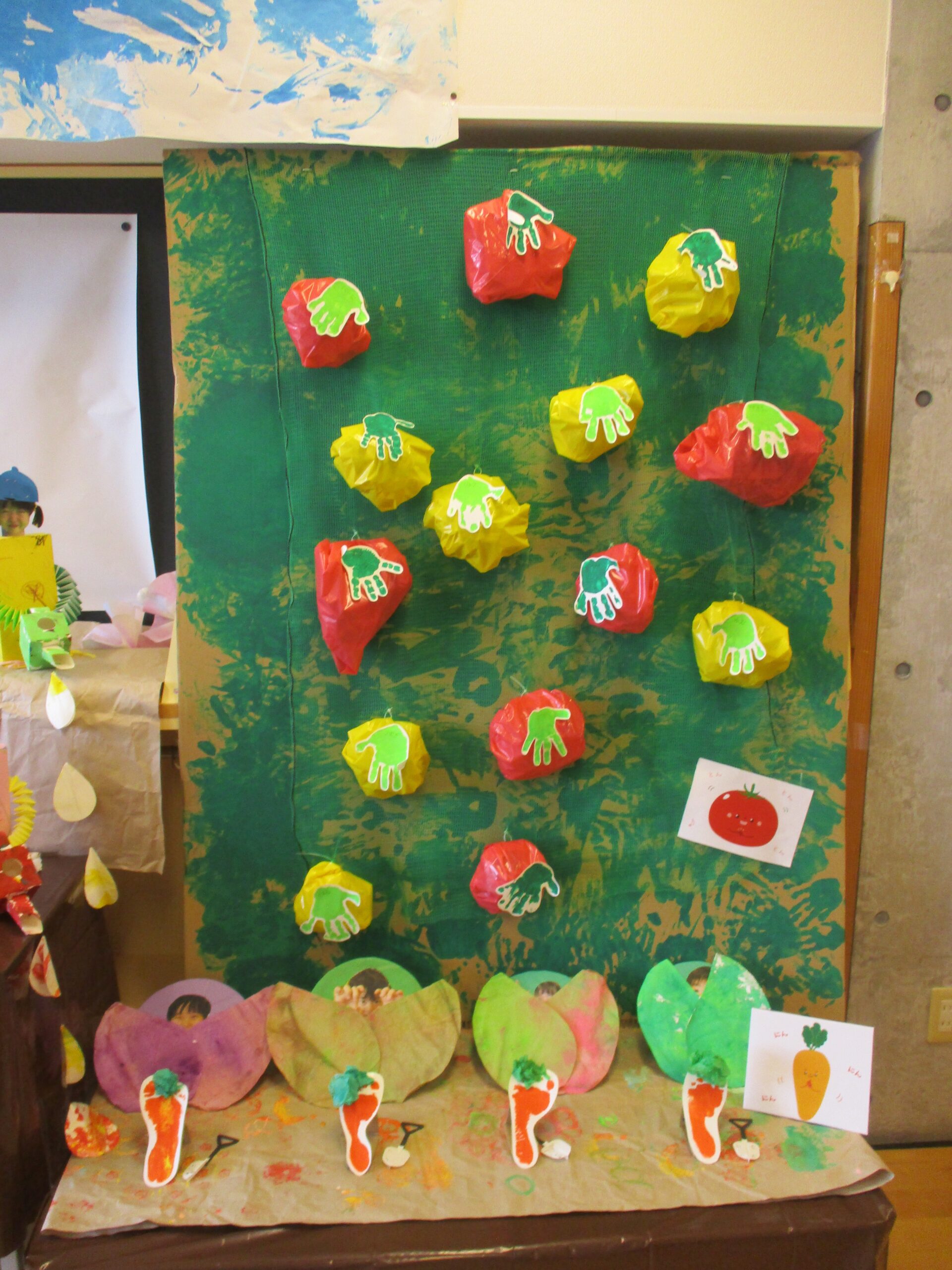 キャベツやにんじん、グリンピース、トマト、きゅうり、水やりをする子どもたちのおかげで、たくさんの野菜が育ちました🍅🥒